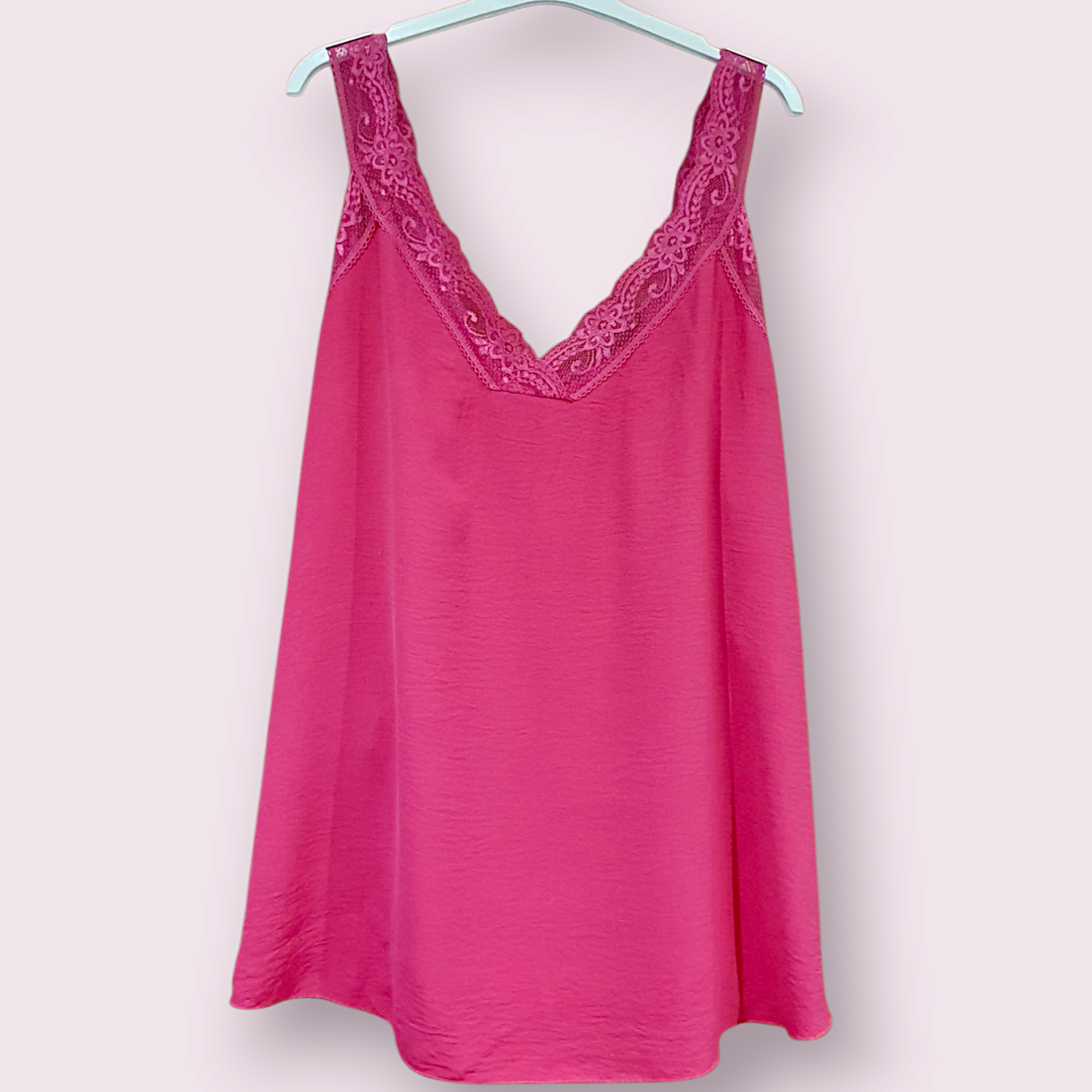 Camisa lencera básica con escote en pico ,puntillas en escote y tirantes