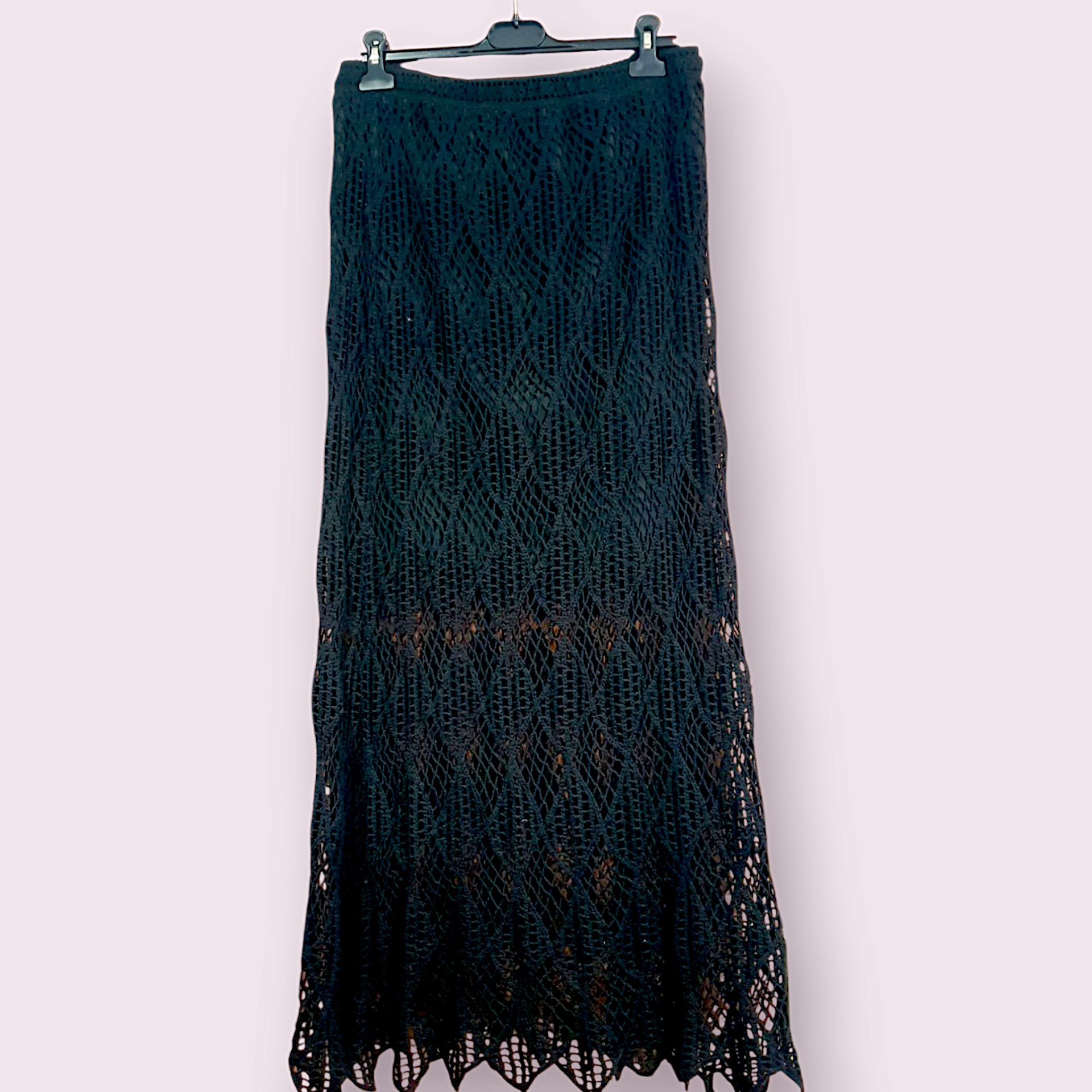 Confeccionada en crochet con forro interior , elástico en la cintura , detalle n bajo acabado en picos