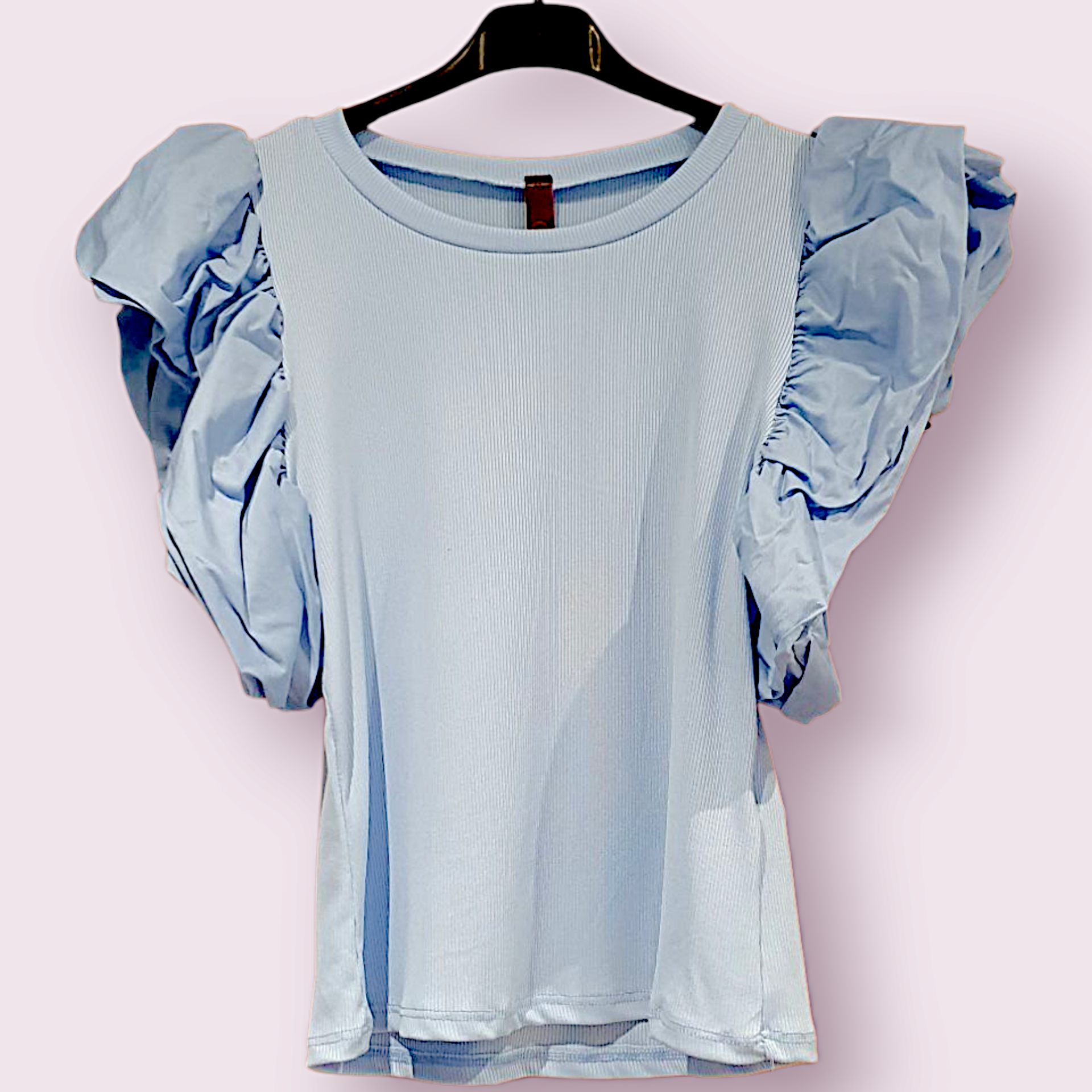 Camiseta de canalé en punto fino con manga de farol confeccionada en poliester